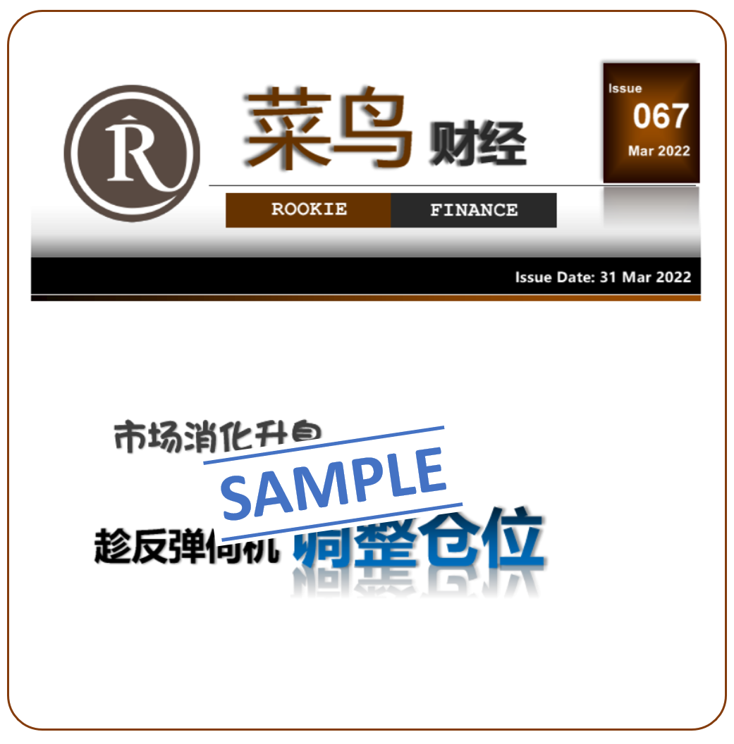 注:《菜鸟财经》将以 email 方式发放,一般在月尾出刊。已订阅 Rookie Portal 菜鸟点评 的学员不需要订阅《菜鸟财经》,因为已包含在内。